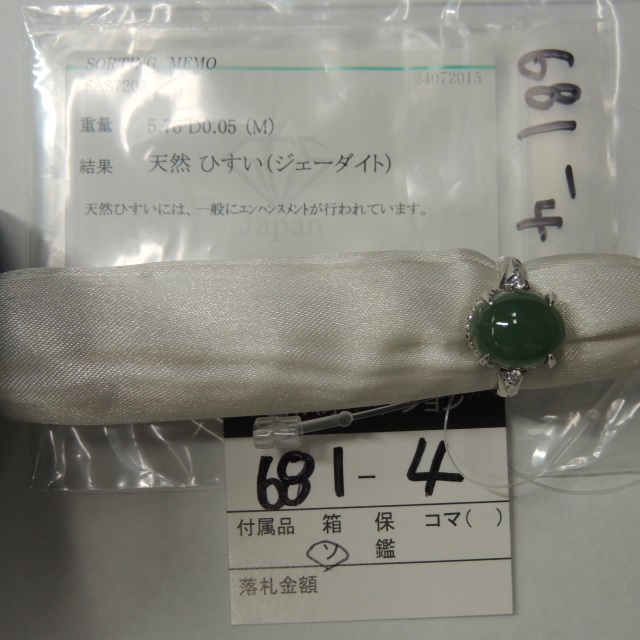 リング ヒスイ ダイヤ Pt900 7.70g 石目:0.53