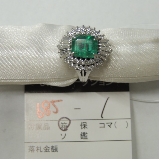 リング エメラルド ダイヤ Pt900 11.94g 石目:2.19 1.24