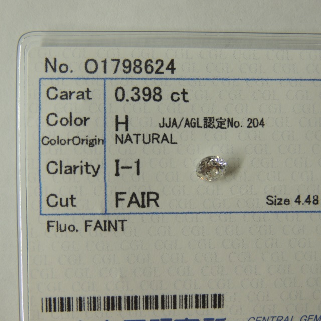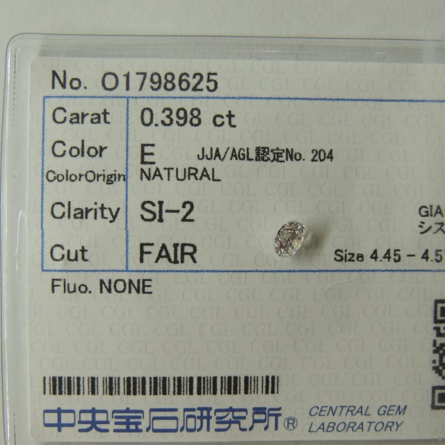 ルース E-SI2-FAIR-NONE 中ソ 石目:0.398
