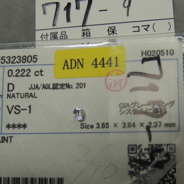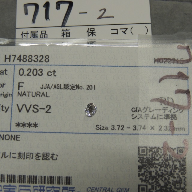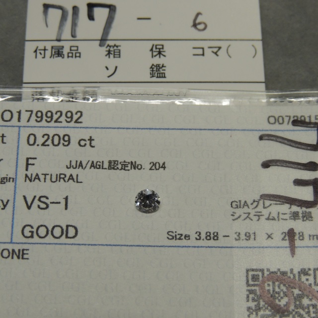 ルース D-VS1-FAINT 中ソ 鑑 石目:0.222