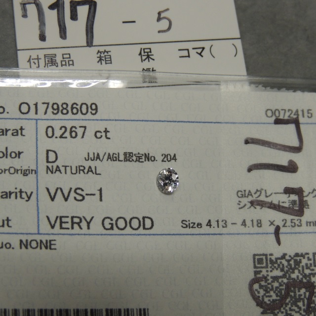ルース D-VVS1-VG-NONE 中ソ 石目:0.267