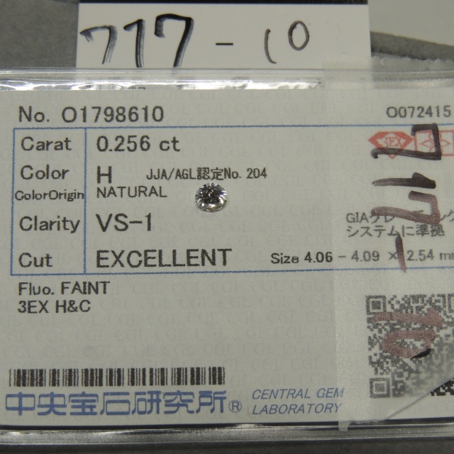 ルース H-VS1-EX-FAINT 3EX-H 中ソ 石目:0.256