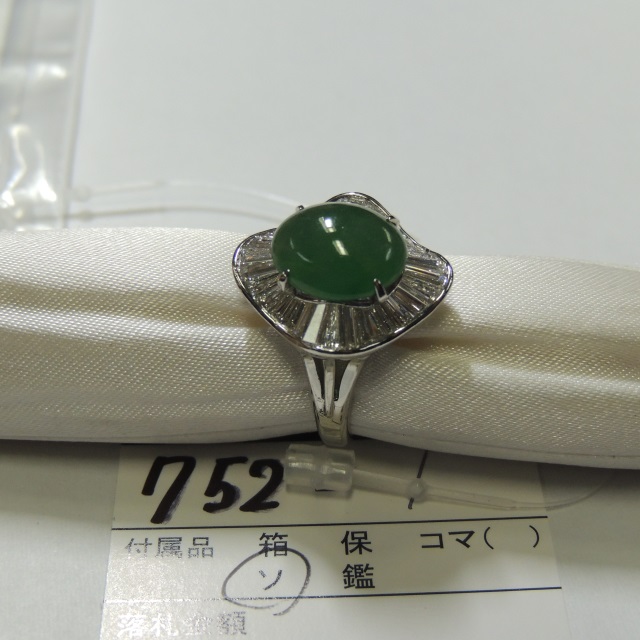 リング ヒスイ ダイヤ Pt900 9.10g 中ソ 石目:4.007 1.3
