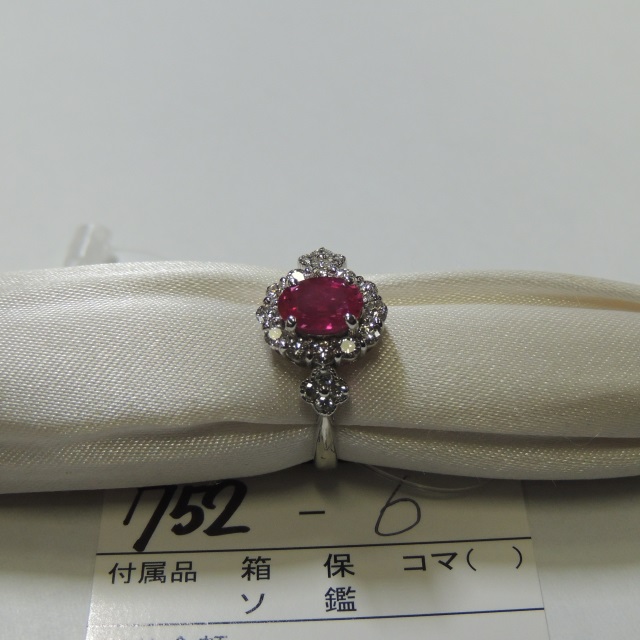 リング ルビー ダイヤ K18WG 4.30g 石目:1.18 0.51