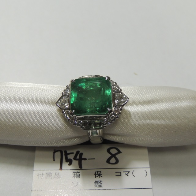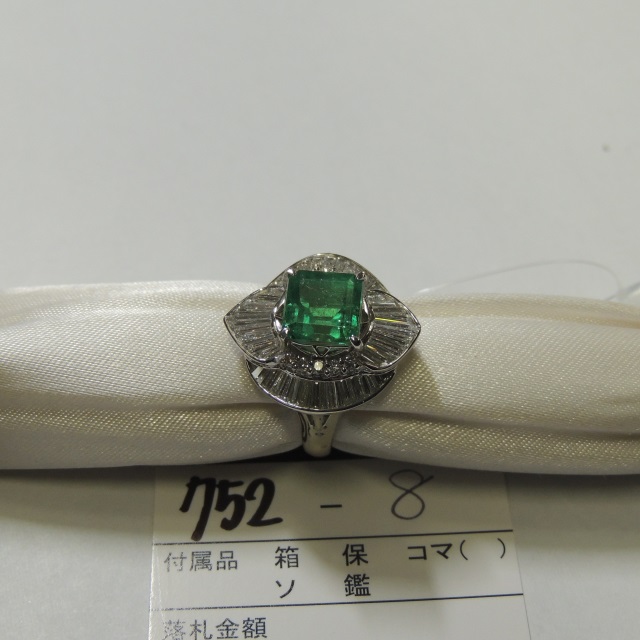 リング エメラルド ダイヤ Pt900 10.40g 中鑑 石目:2.05 0.83