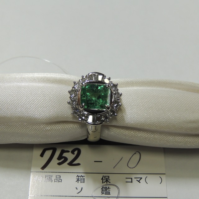 リング エメラルド ダイヤ Pt900 17.60g 石目:10.01 2.35
