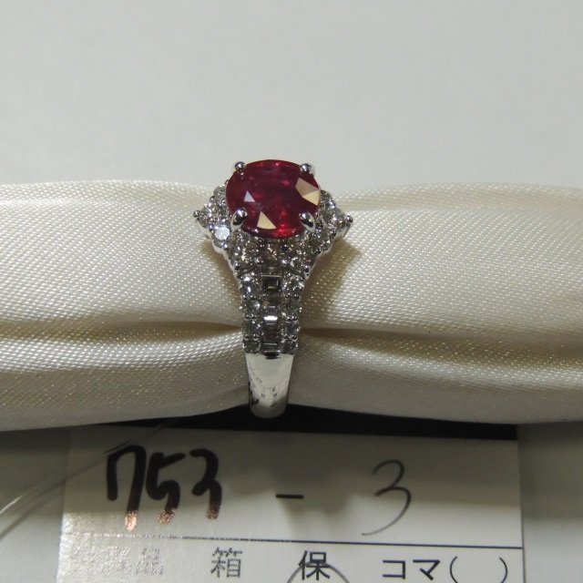 リング ルビー タイ ダイヤ Pt900 9.80g 鑑 石目:2.28 D2.019