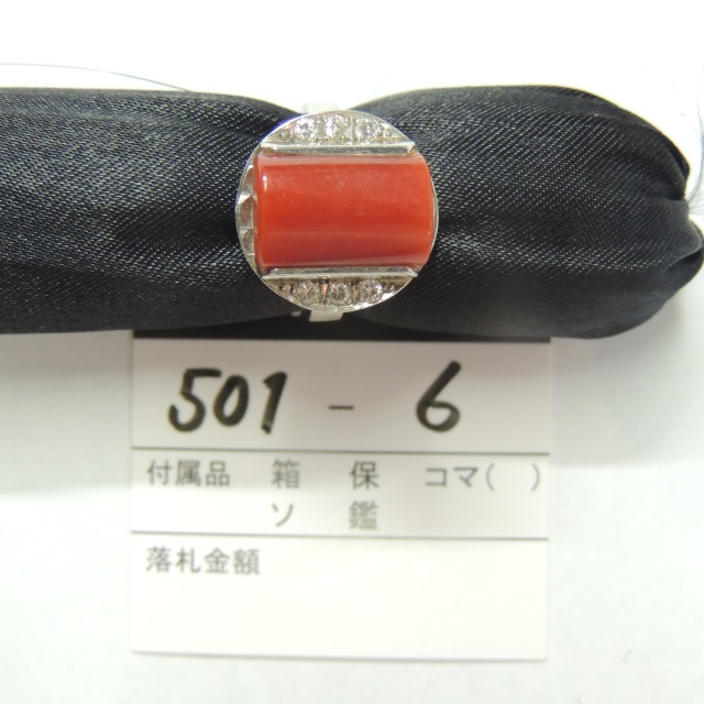 リング サンゴ ダイヤ Pt900 7.90g 石目:D0.15