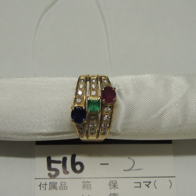 リング ルビー エメラルド サファイア ダイヤ K18 6.50g 石目:E0.19 S0.40 R0.32 D0.33