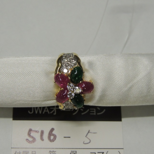 リング ルビー エメラルド ダイヤ K18 8.30g 中鑑 石目:R1.75 E0.78 D0.55