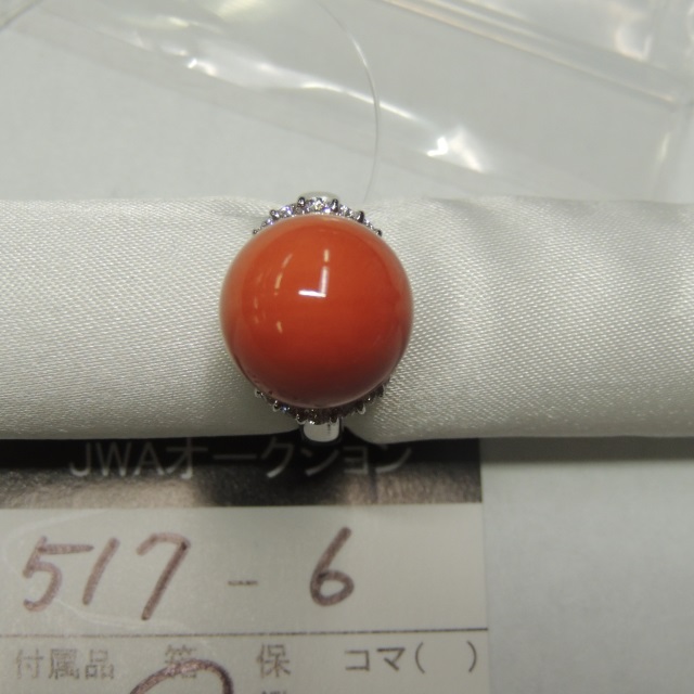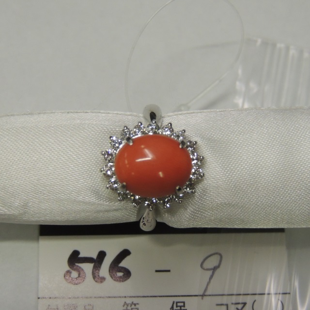 リング サンゴ ダイヤ Pt850 5.50g GRJソ 石目:CO3.01 D0.48