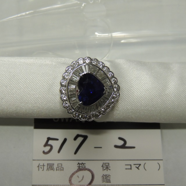 リング サファイア ダイヤ Pt900 6.30g 鑑 石目:S1.18 D0.58