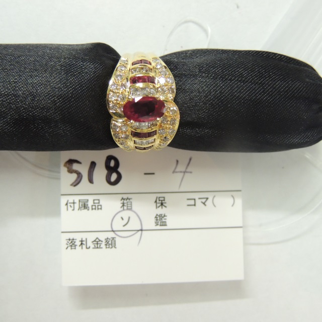リング ルビー ダイヤ K18 8.00g 中ソ 石目:0.83 D0.85