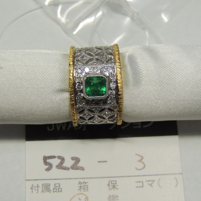 リング エメラルド Pt900/K18 13.00g 中ソ 石目:0.613 FD0.51