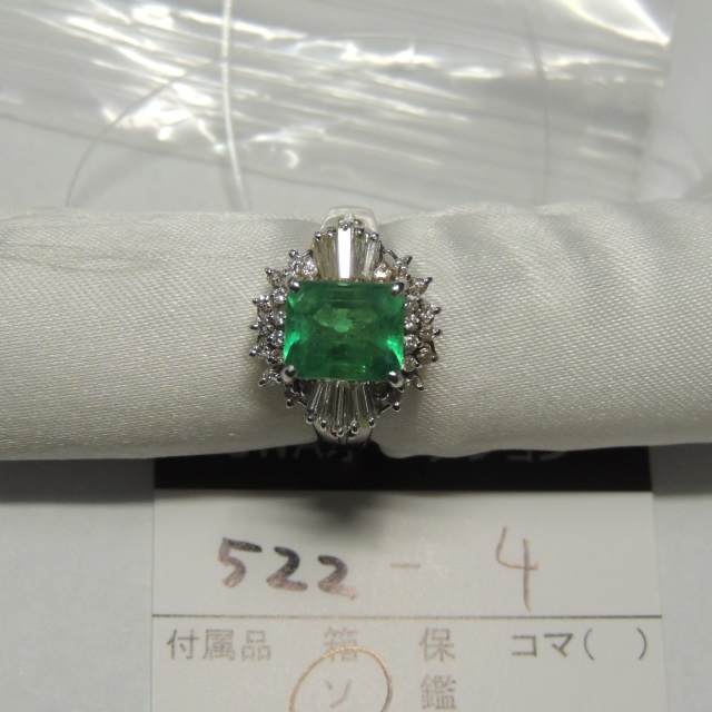 リング エメラルド Pt900 6.90g GRJソ 石目:1.87 FD0.44