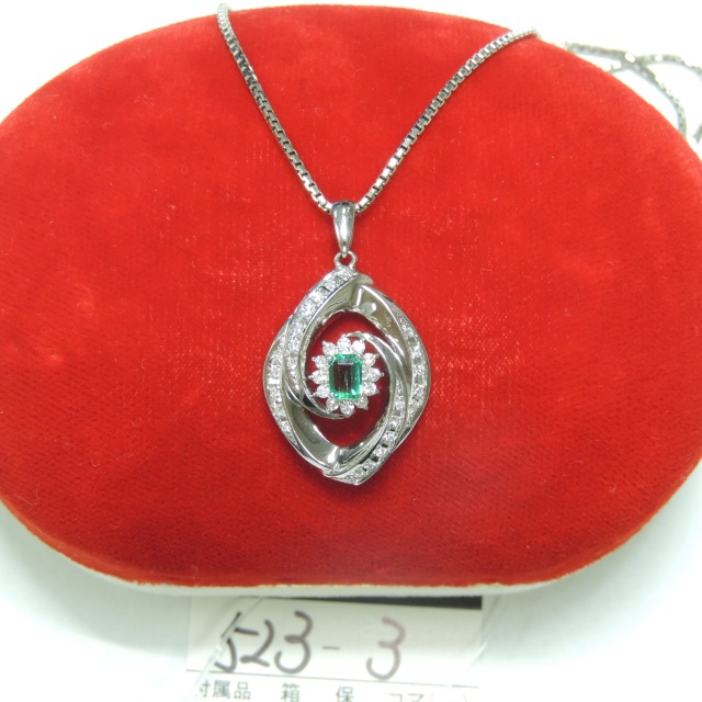 ペン・ネック エメラルド Pt900/Pt850 15.80g 石目:E0.33 FD0.38