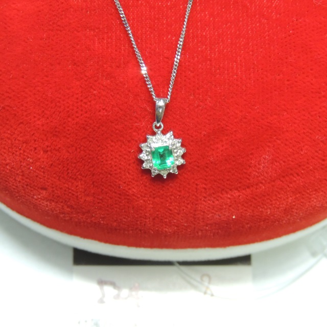 ペン・ネック エメラルド Pt900/Pt850 3.00g GRJソ 石目:0.29 FD0.10