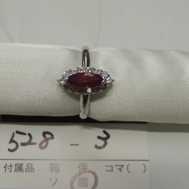 リング ルビー ダイヤ Pt900 4.30g 鑑 石目:R1.08 D0.32
