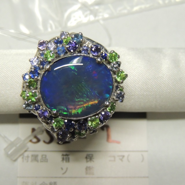 リング ブラックオパール K18WG/Pt900 48.10g 中ソ 石目:9.71
