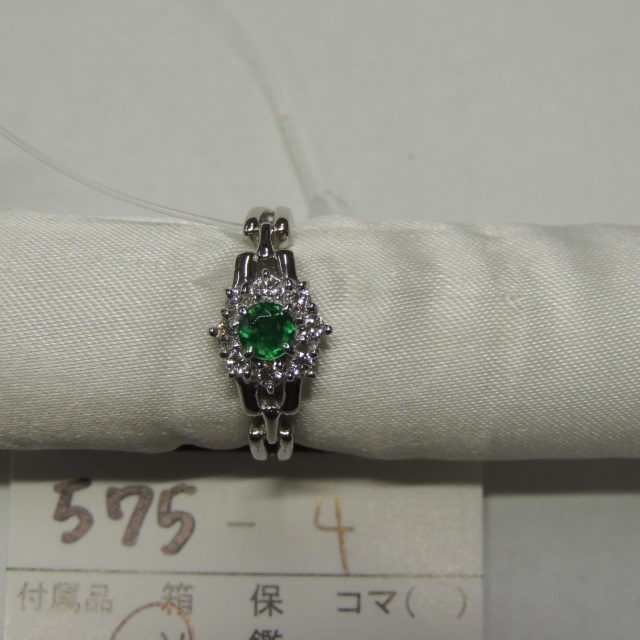 リング エメラルド ダイヤ Pt900 6.40g 中ソ 石目:0.25 FD0.24