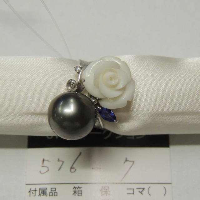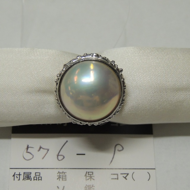 リング 檜左賢治 パール 白サンゴ P12mm K18WG 10.10g