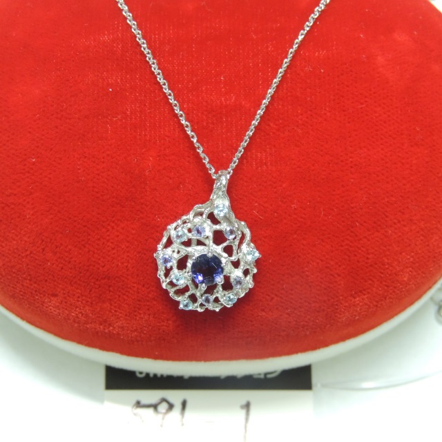 ペン・ネック 桐山勇三 アイオライト マルチ石 K18WG 6.90g 中ソ 石目:0.45