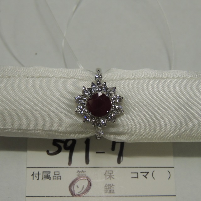 リング ルビー ダイヤ Pt900 3.40g 中ソ 石目:0.925 D0.54