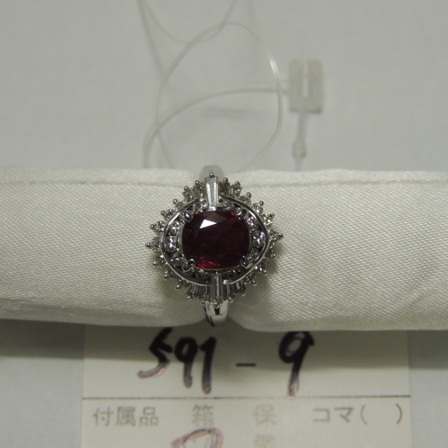 リング ルビー ダイヤ Pt900 15.60g 中ソ 石目:R3.53 D0.52