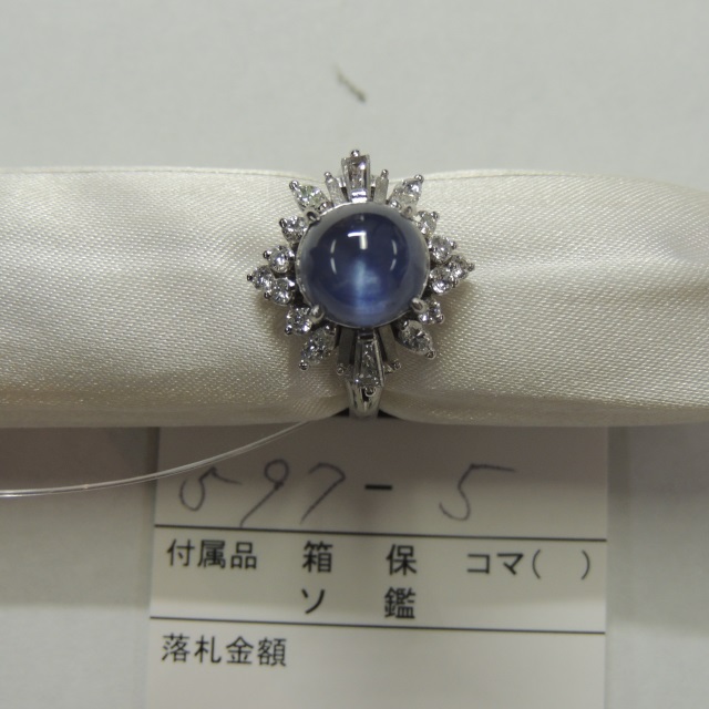 ペントップ スターサファイア Pt950 10.20g 鑑 石目:7.27 D0.10 D0.98