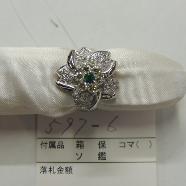 リング エメラルド ダイヤ Pt900 5.20g 石目:D0.41