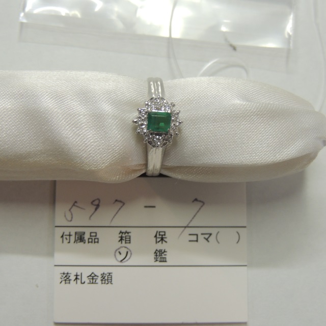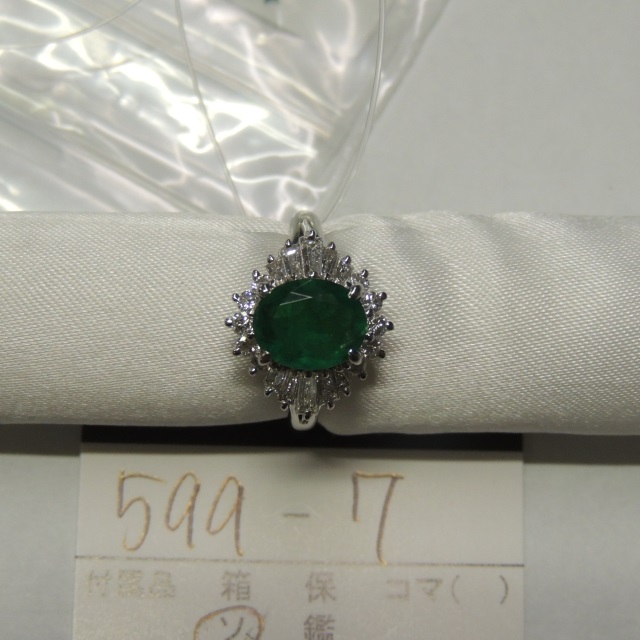 リング エメラルド ダイヤ Pt900 7.00g 中ソ 石目:E2.74 FD0.95