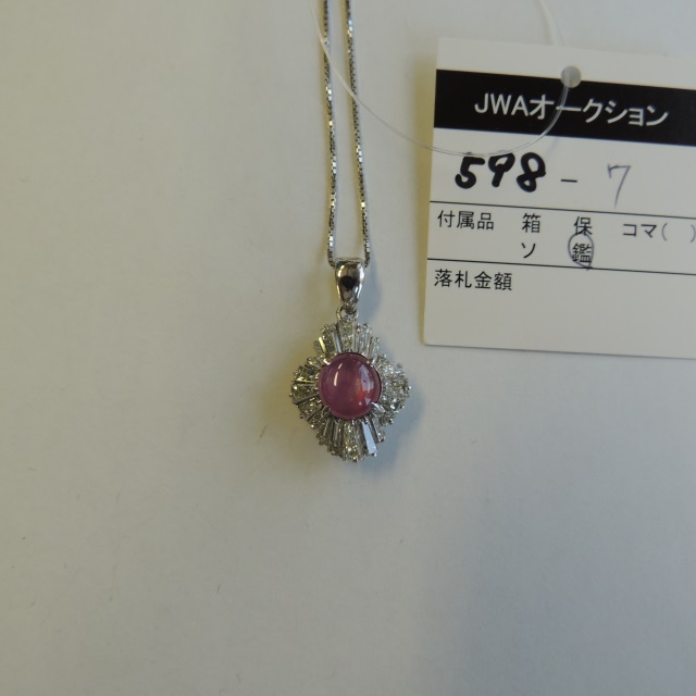 ペン・ネック ピンクスターサファイア ダイヤ Pt850/Pt900 9.50g 中鑑