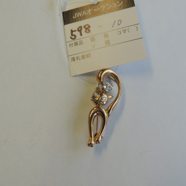 ペン・ブローチ 猫 ダイヤ K18 8.30g 石目:0.287 0.02