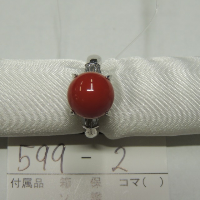 リング サンゴ 10.3mm ダイヤ Pt900 8.40g 石目:FD0.22