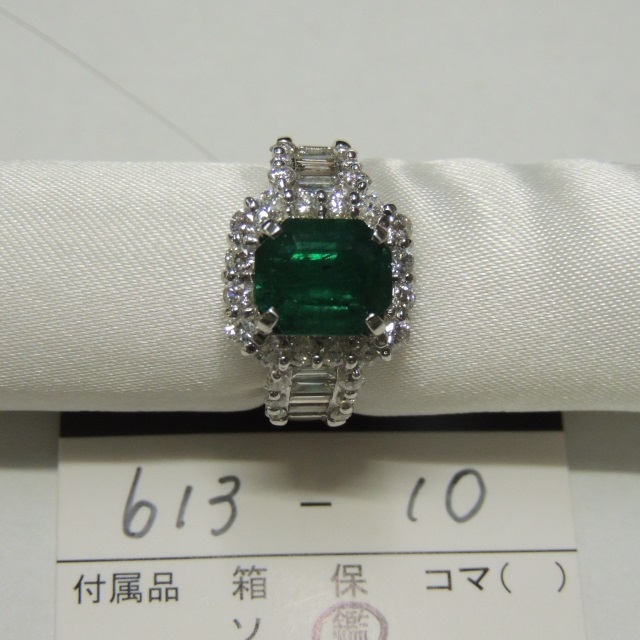 リング エメラルド コロンビア産 Pt900 10.60g 鑑 石目:3.46 1.40
