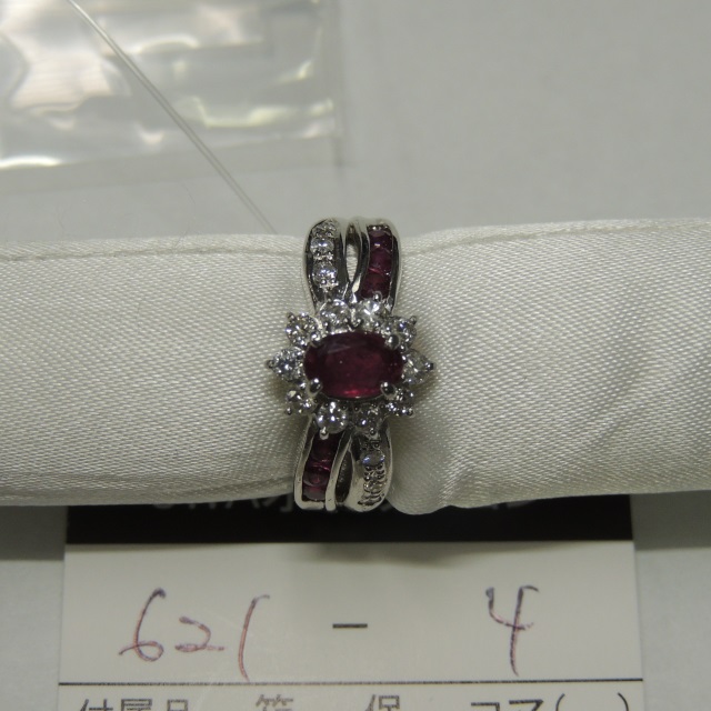リング ルビー ダイヤ Pt950 7.70g 中ソ 石目:1.13 0.22