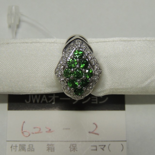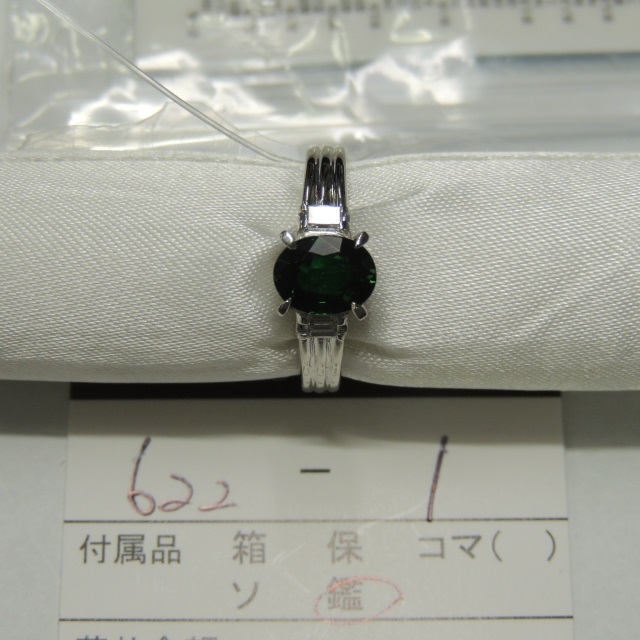 リング グリーングロッシュラ-ガーネット ダイヤ Pt900 9.30g 石目:1.22 D0.48