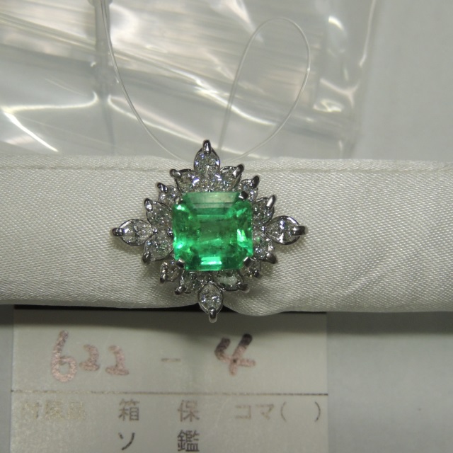 リング エメラルド ダイヤ Pt900 7.50g 中ソ 石目:2.75 0.70