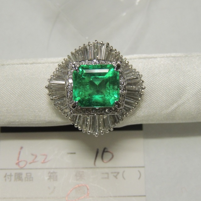 リング エメラルド ダイヤ Pt900 7.90g ソ 石目:3.11 D1.36