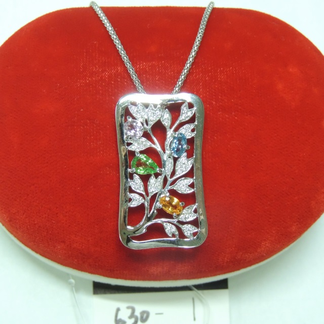 ペン・ネック ダイヤ 色石 K18WG 14.30g 石目:D0.24 0.44 0.38 0.65 0.66