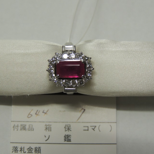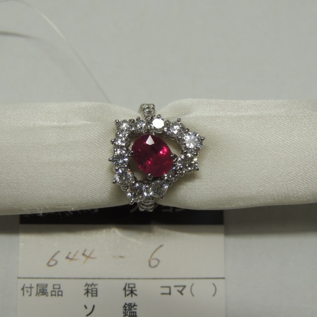 リング ルビー ミャンマー産 Pt900 7.50g GRJ鑑 石目:R1.69 D3.20