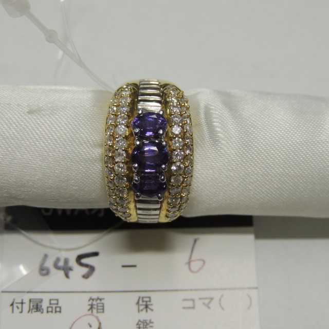 リング バイオレット サファイア ダイヤ Pt900/K18 11.90g 中ソ 石目:1.23 FD1.00