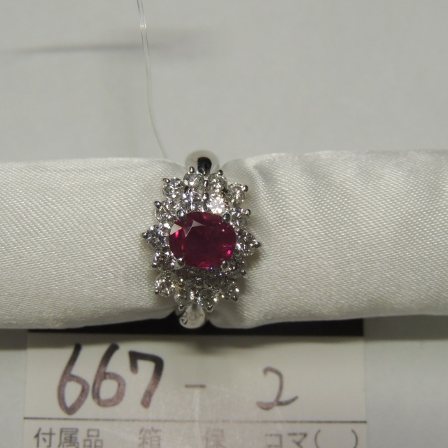 リング ルビー ダイヤ Pt850 8.80g 石目:R1.93 D1.02