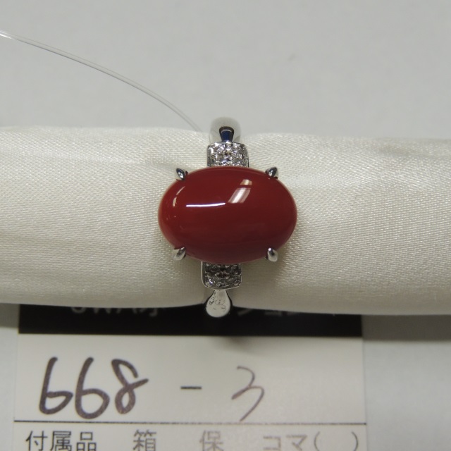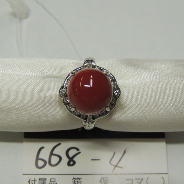 リング サンゴ ダイヤ 金性薄れ Pt900 7.20g 石目:D0.06