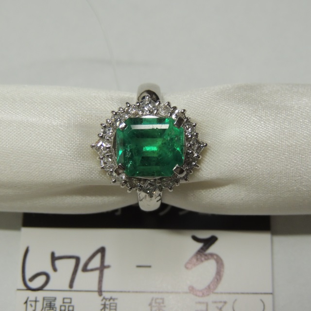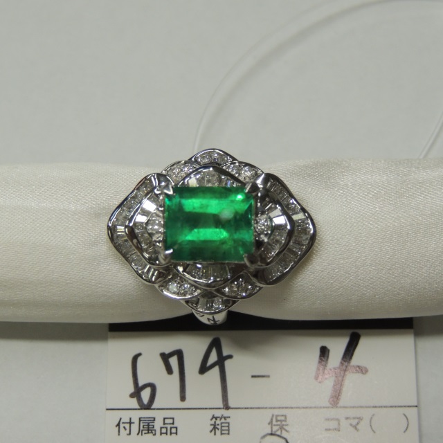 リング エメラルド ダイヤ Pt900 9.30g 鑑 石目:2.74 0.43
