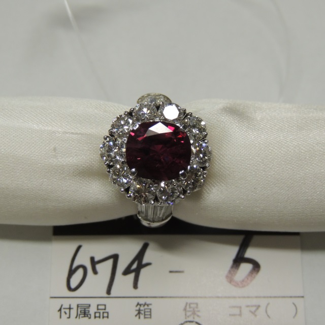 リング ルビー タイ ダイヤ Pt900 13.25g 鑑 中鑑 石目:3.18 2.77