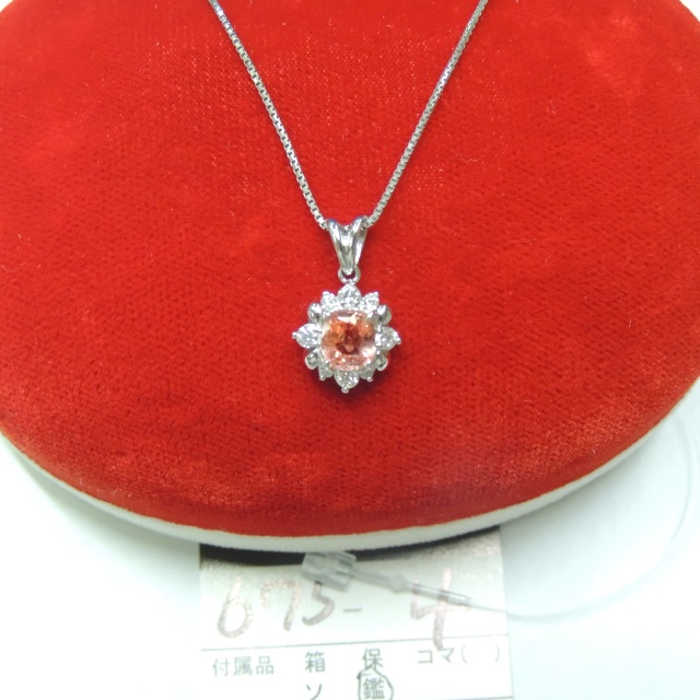 ペン・ネック パパラチャ ダイヤ Pt900/K18WG 5.45g 鑑 石目:0.944 0.25