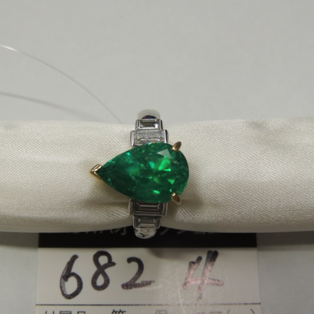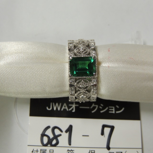 リング エメラルド ダイヤ Pt900 12.60g 石目:5.250 D0.98