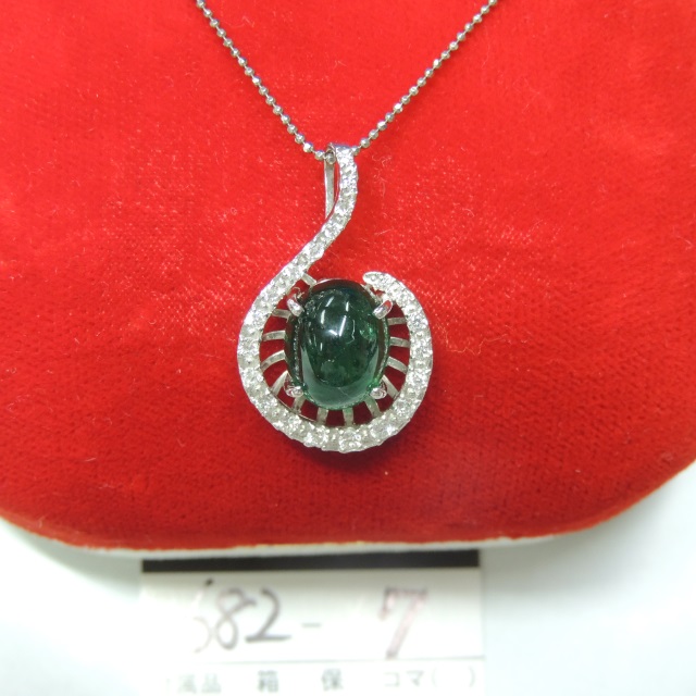 ペン・ネック エメラルド カボション ダイヤ Pt900/850 7.25g 石目:6.18 D0.39