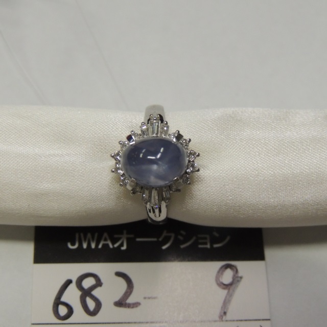 リング スターサファイア ダイヤ Pt900 7.80g 鑑 石目:5.45 D0.37